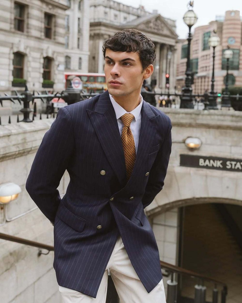 The six buttons double-breasted blazer is the gentlemen choice although it is becoming a really popular option. Our tailors are ready to cut the Technical fabric needed to start tailoring your suit with all the style choices you made: Double-breasted jacket, standard lapel and 2 pockets among others.At Hockerty every single suit is made to measure, so you can customize this design or you can create your own here: Tan Suits