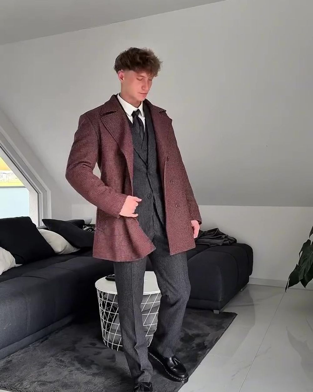 Add a dash of classic charm to your wardrobe with these expertly crafted grey houndstooth tweed trousers. Tailored to a slim fit, these trousers boast a modern silhouette that flatters every frame, making them an ideal choice for the contemporary gentleman. Made from a luxurious wool blend, these trousers provide comfort and warmth during the winter months while maintaining a smart, refined appearance.