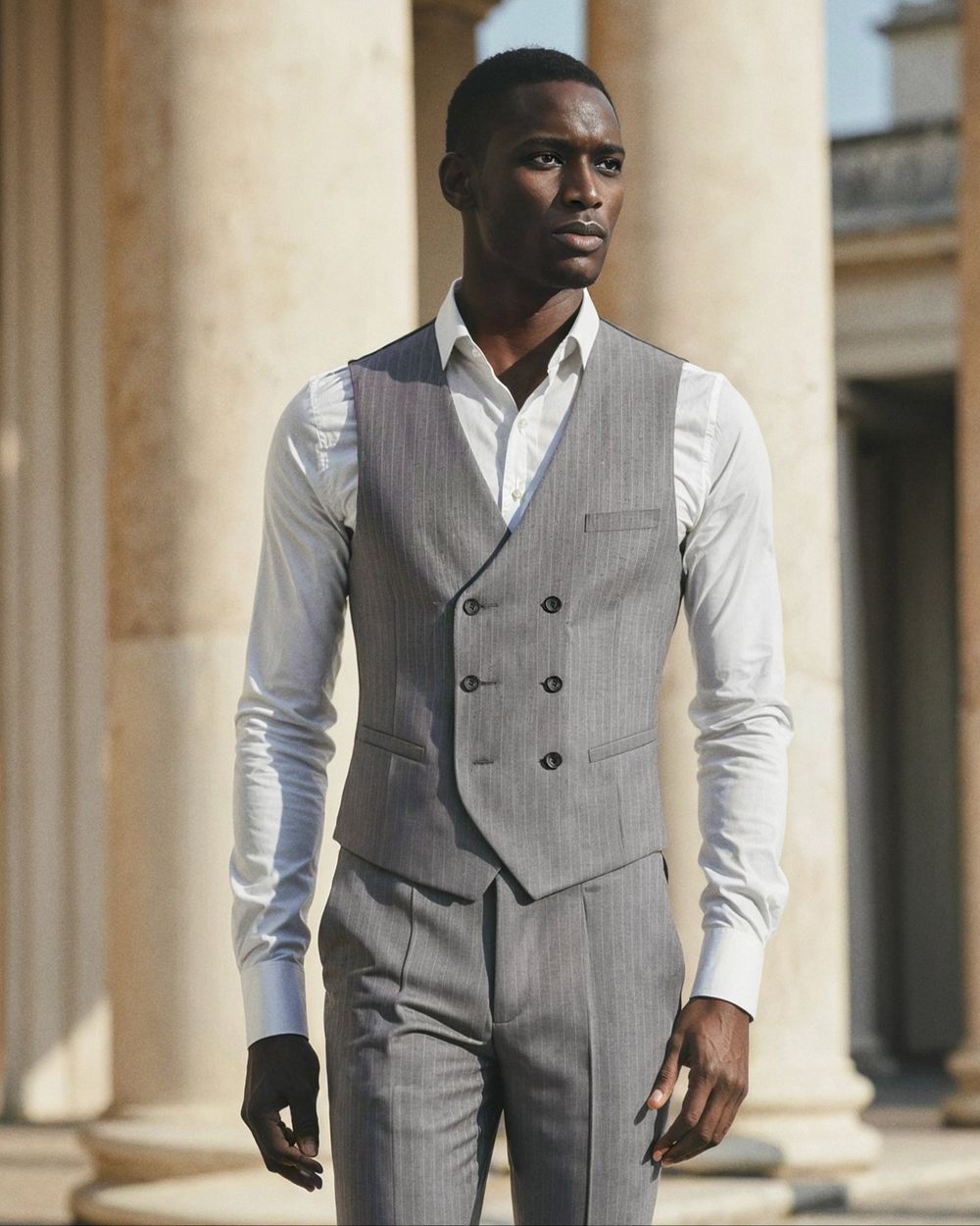 Elevate your wardrobe with these versatile mid-grey pinstripe trousers, a must-have for the modern man seeking both style and comfort in every stride. Expertly crafted in a slim fit, these trousers embody a sleek silhouette that's perfectly in tune with contemporary fashion sensibilities. Whether you're dressing for a business meeting, a casual outing, or a celebratory event, these trousers transition seamlessly across occasions with their sophisticated design.