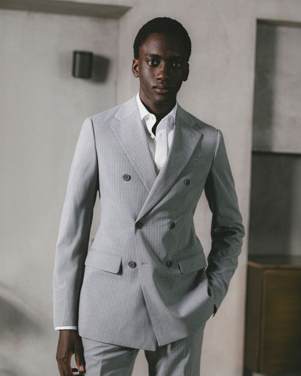 Step into these mid-grey pinstripe trousers and experience a combination of elegance and ease, constructed to adapt to your lifestyle. The thoughtful craftsmanship and attention to detail assure you're investing in a piece that will enhance your personal style, allowing you to make a confident and assured statement wherever you go. Experience the perfect blend of fashion and function, ready to be your go-to choice for unmatchable sophistication and comfort.