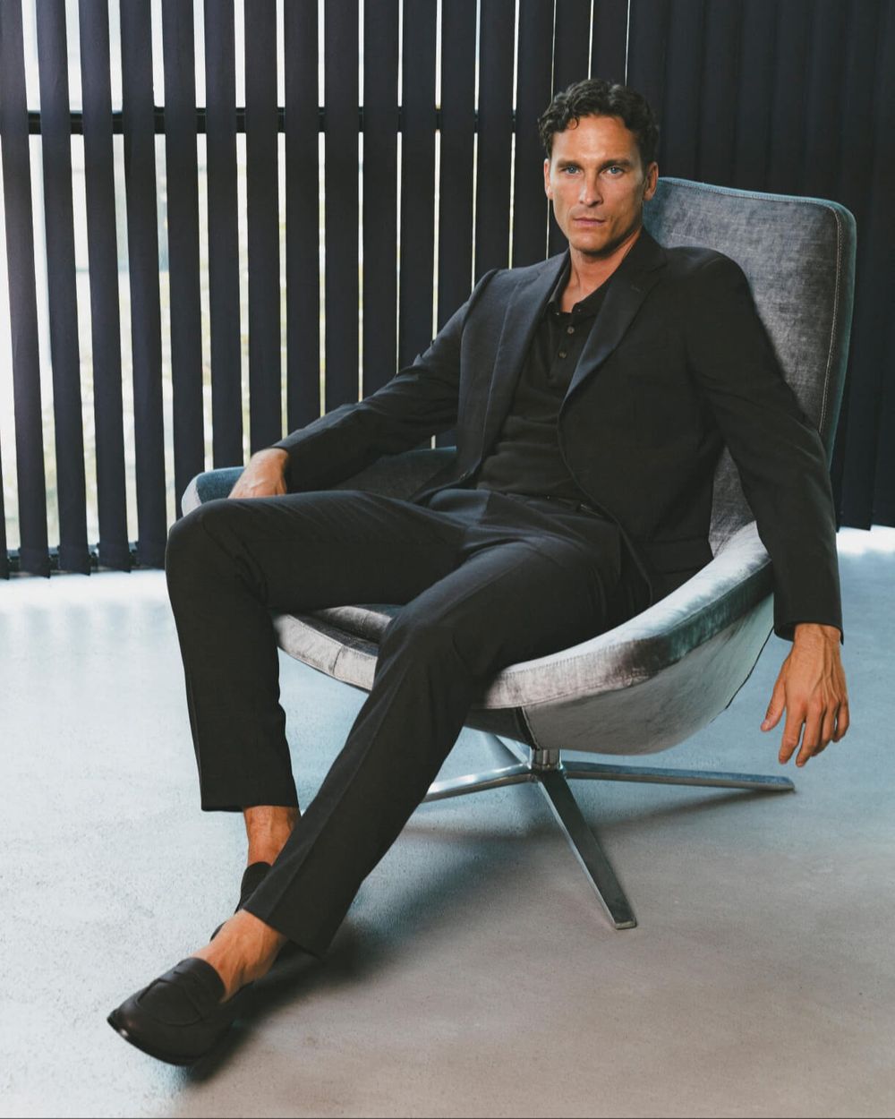 Designed with practicality in mind, the trousers feature double pleats for added comfort and an off-centered fastening that not only ensures a perfect fit but also adds a subtle uniqueness to your ensemble. The no break hem gives these trousers a sleek, tailored appearance, perfect for showcasing a polished look. Meanwhile, the diagonal front pockets offer easy access without compromising on style, and a single double-welted back pocket with a button provides secure storage for your essentials.