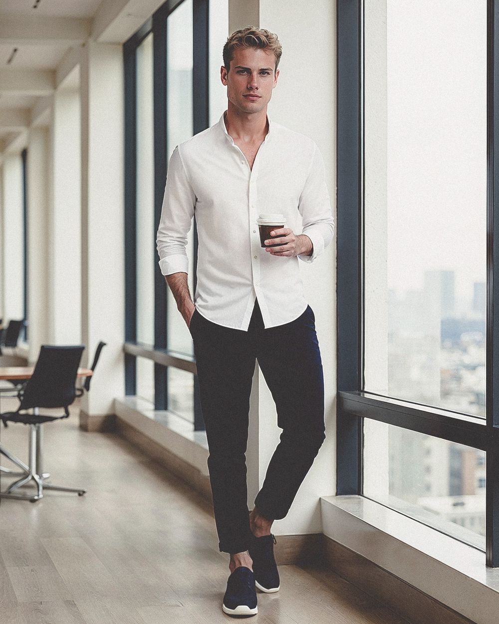 With a solid white tone, this shirt embodies versatility, effortlessly complementing any color palette in your wardrobe. The fabric is designed for year-round wear, offering adaptability through changing seasons, making it a reliable staple whether layered under a sweater during crisp autumn days or worn on its own during warm summer evenings.