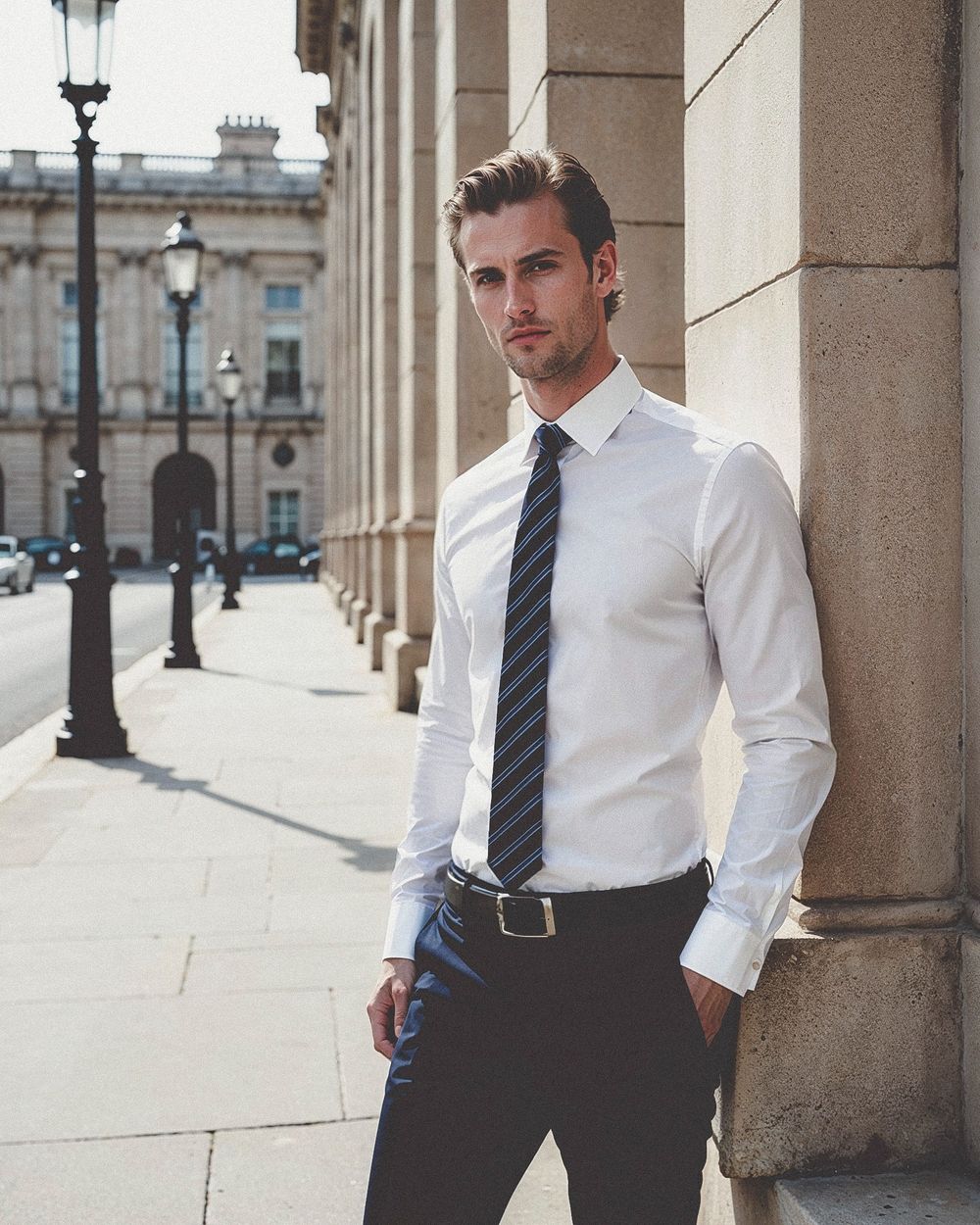 Whether you're commanding attention during a pivotal business meeting or celebrating a special occasion, these dark blue pinstripe trousers offer unmatched versatility and style. Fusing timeless patterns with modern tailoring, these trousers empower every man to showcase his elegance in both professional and personal settings.