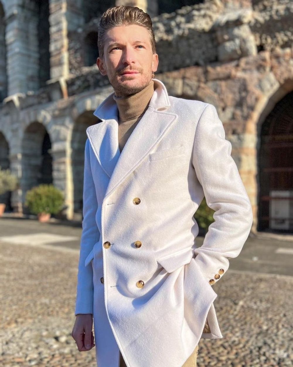 Designed with a sleek, ulster lapel style, this coat commands attention without being overt. The double-breasted front adds a layer of refinement while providing an additional barrier against brisk winds. Innovatively tailored in a slim fit, the coat offers a modern silhouette that complements the contemporary man's wardrobe. Despite the short length, this coat does not compromise on style—it's perfect for layering over suits for winter commutes or pairing with casual wear for an evening out.
