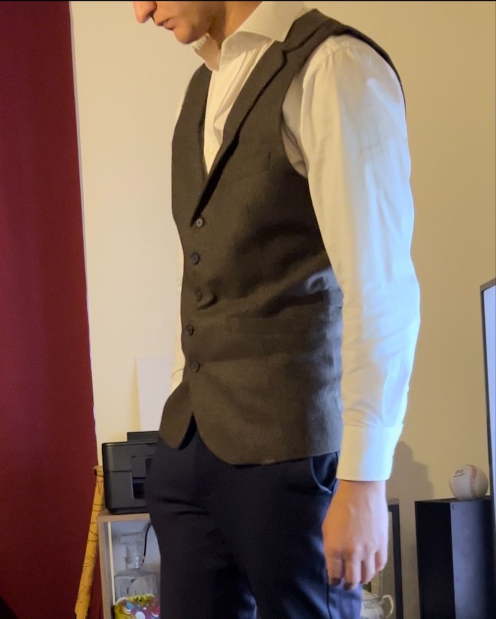 Functionality meets style with the inclusion of a single chest pocket, perfect for adding a pocket square for a splash of color or a bit of flair. The waistcoat is also equipped with welt pockets, offering a practical yet stylish solution for small essentials, adding to its smart-casual versatility.