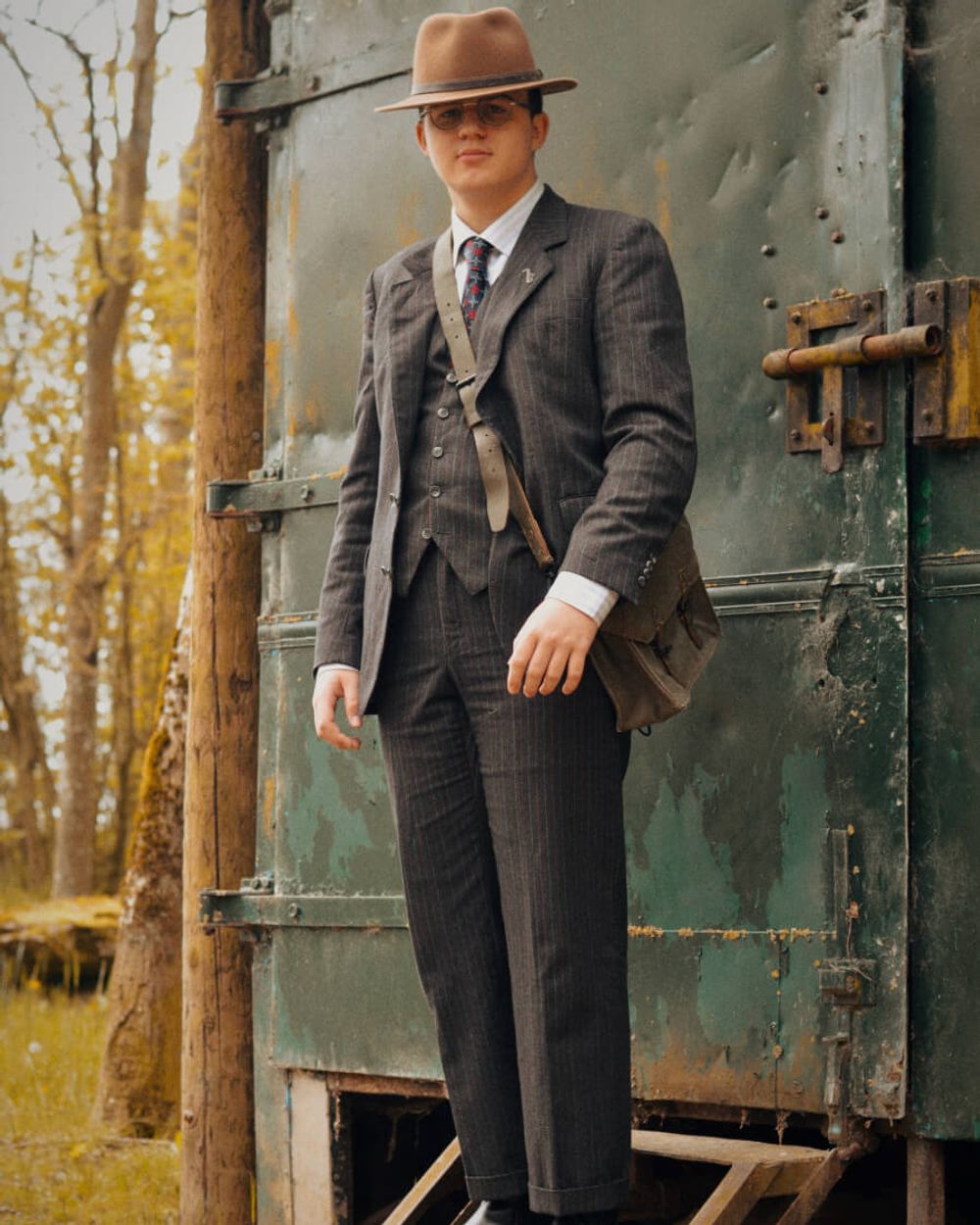 A Gray Pinstripe pure wool double-breasted peak lapel Suit with a pocket square will fit you like a glove. All Hockerty Suits are 100% made to measure. Get measured at home and we will tailor a personalized gray Suit from scratch
