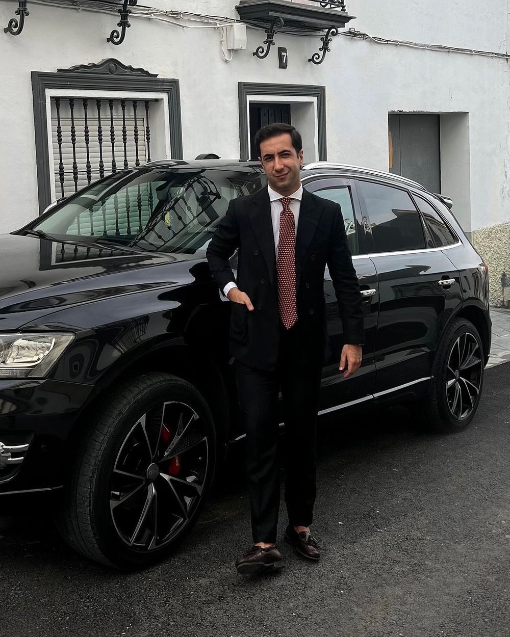 This outfit is perfect for black-tie events, weddings, or any formal gathering where you aim to make a lasting impression. The classic pairing of burgundy and black creates a look that is both timeless and modern, allowing you to exude confidence and poise.