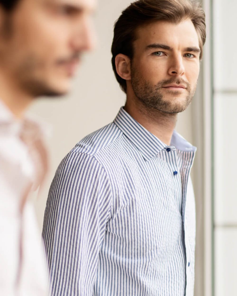 This already looks great like this, but since we believe in custom fashion, we give you the possibility to personalize this shirt to your speicfic preferences. Pockets, Buttons, Collar, Cuffs make it yours in a few clicks. Design from scratch your own here: Custom Dress Shirts