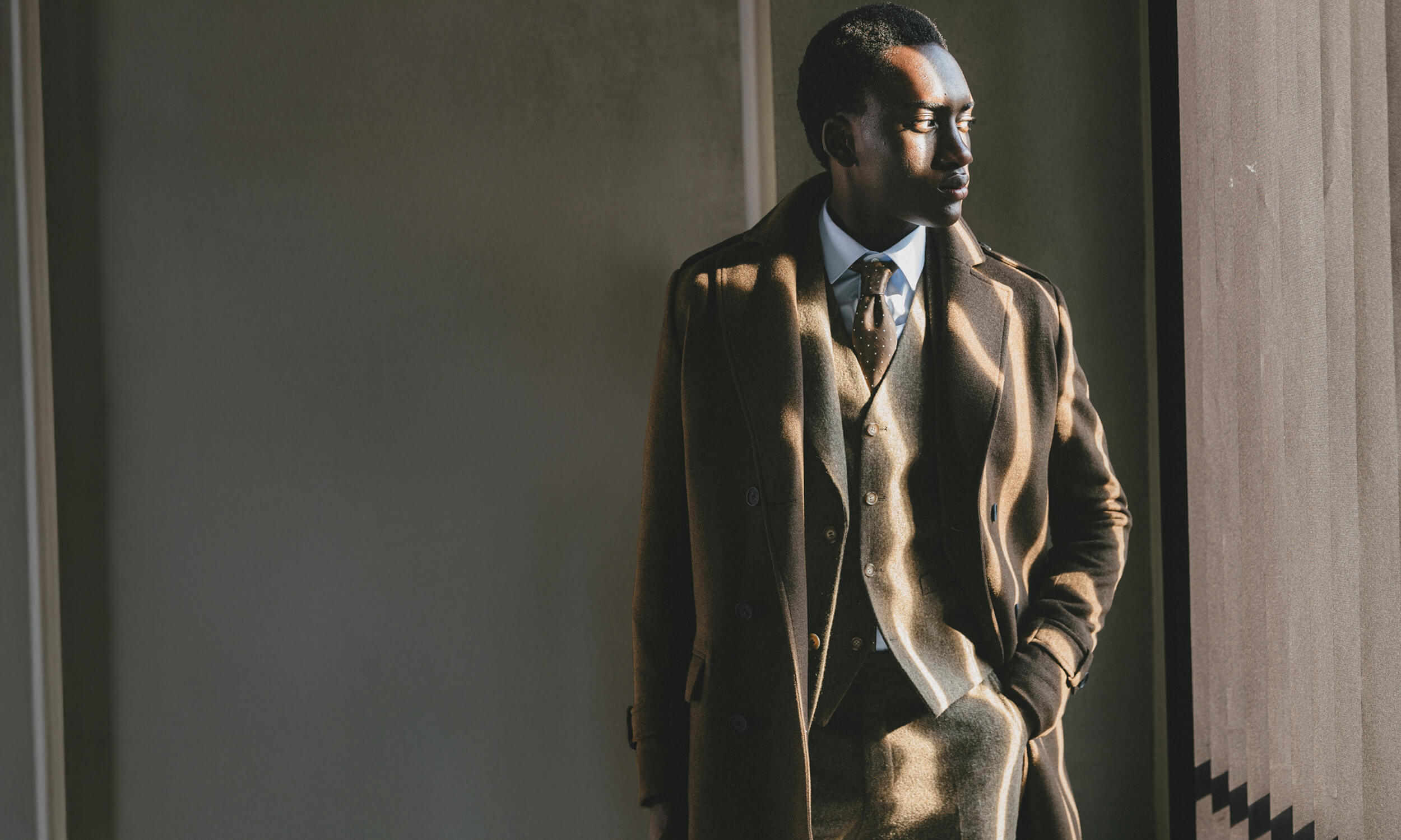 A custom tailored double breasted overcoat for men is the perfect way to look classic and trendy as well as comfortable and warm on cold days.